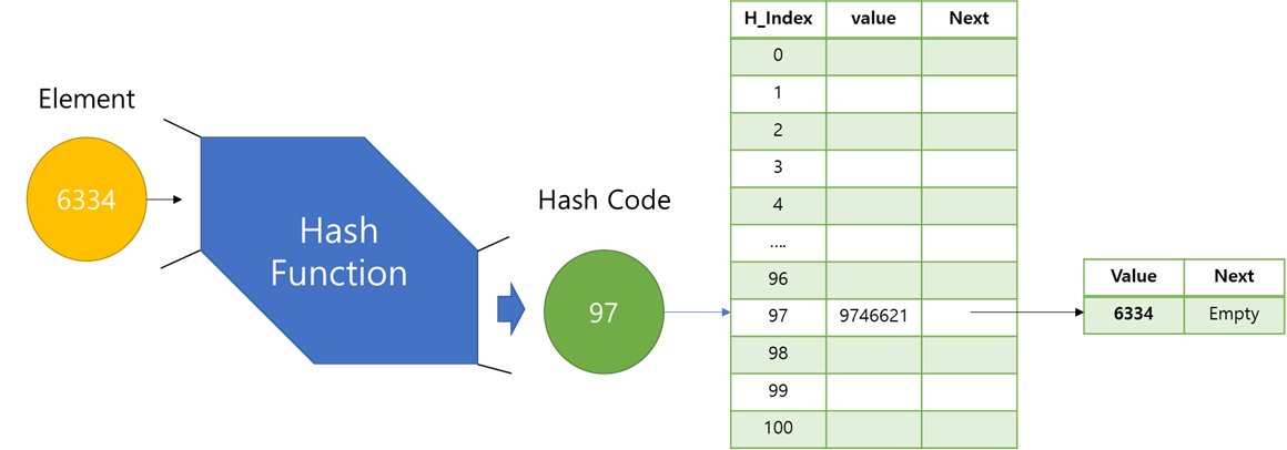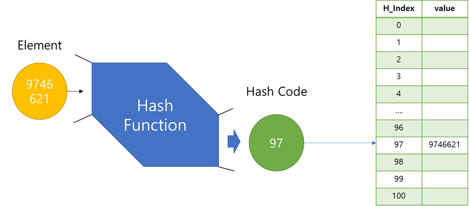 Hash Table에서 Hash Code에 해당하는 Index에 Element가 들어가게 됩니다.