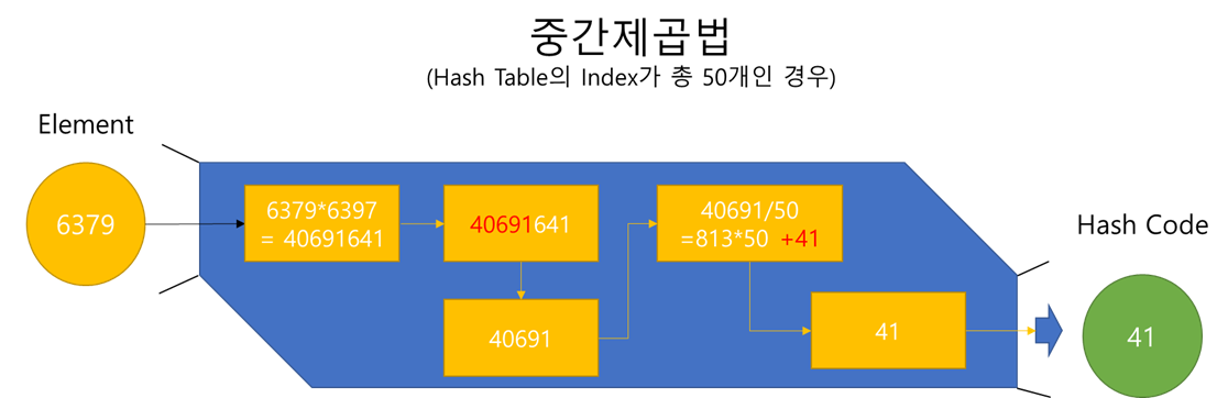 제곱을 한 값에서 기존 Element의 자린수를 기준으로 중간에 숫자를 뽑아내는 방식입니다.