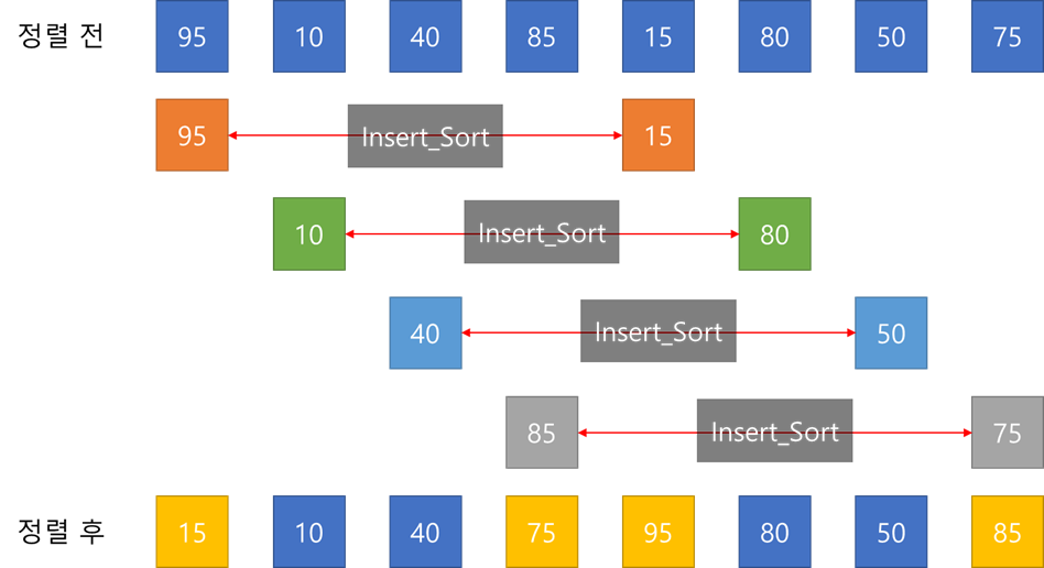 따라서 크게크게 Insert Sort를 진행해서 어느정도 정렬된 배열을 만들고