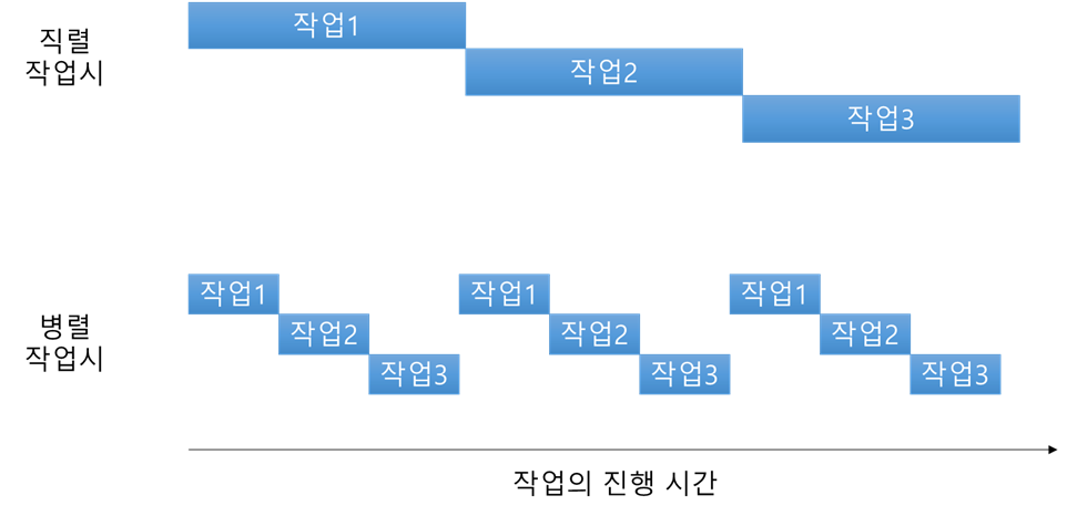 어차피 작업을 직렬작업이나 병렬작업이나 어차피 걸리는 시간을 동일합니다.